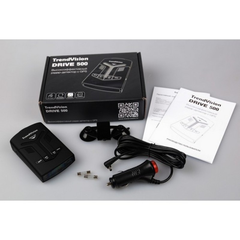 TrendVision Drive 500. Данное устройство предназначено для заблаговременного предупреждения о приближении к радарам и камерам как на трассе, так и на дорогах города. Устройство оснащено встроенным GPS модулем, ярким и контрастным сегментным дисплеем, и громким динамиком, что позволит Вам использовать устройство не отвлекаясь от управления транспортным средством.Широкий выбор функций, позволит настроить устройство как Вам удобно.Устройство с легкостью крепится к лобовому стеклу с помощью крепления на присосках и не мешает обзору при управлении автомобилем. Большое количество определяемых радаров и использование базы GPS, не позволит Вам пропустить никакой установленный на дороге радар.